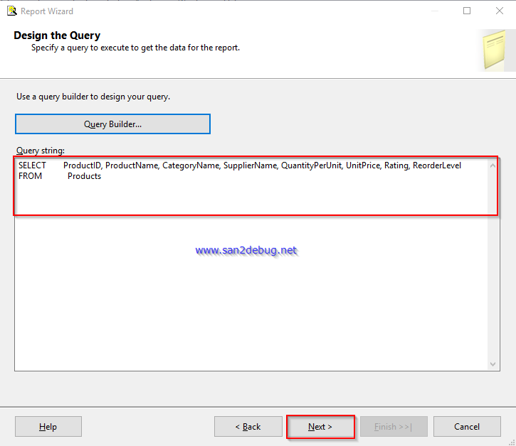 The Design Query Window will look as shown in the screenshot given below. Now, click Next button.