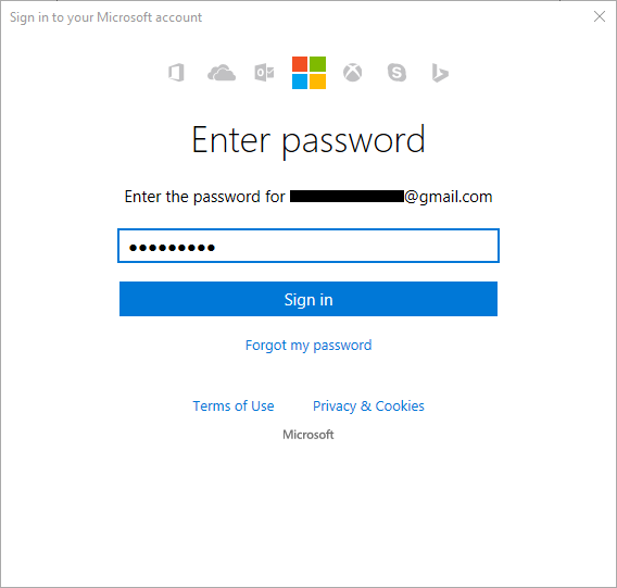 Microsoft account Window will open, you can give your Microsoft account credentials and log in the screen, mentioned below.