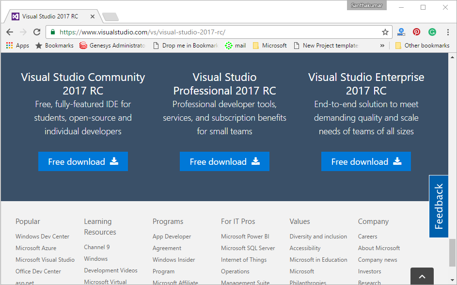 If you want to know how to install Visual Studio 2017 RC to your PC/Laptop. I have downloaded Visual Studio Community 2017 RC from Microsoft, as given in the link. You can see step by step guidelines, as given below.