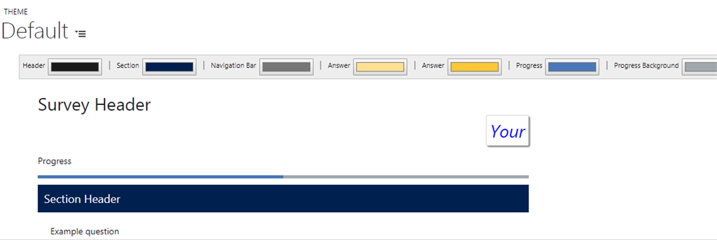 We can personalize our survey using themes. We can use a default theme or we can create our own custom theme for surveys where we can set different component's colors using theme designer