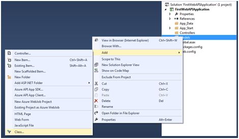 In Solution Explorer, right click on the model folder -> Add - > Class