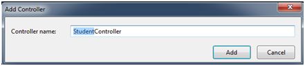 In the Add Controller dialog box, enter the name as StudentController and click Add button, as shown below: