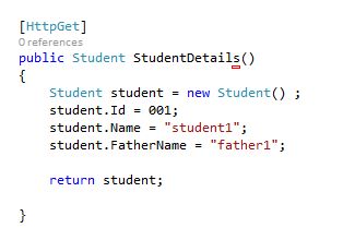Thus, we now want to get student details using http GET request, so we have to create an Action for getting the student details from the StudentController, as shown below: