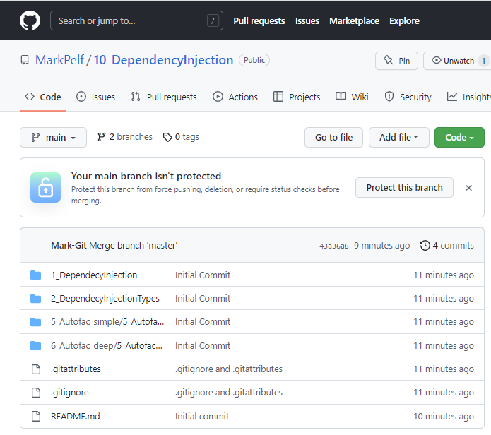 The problem that I had that I am sure will happen again to me and to other people, was that I finished with two branches: main and master. The “main” branch is created by GitHub by default and there is a readme file there. The branch “master” is created by SourceTree by default, and my code (my four VS solutions) is in it.