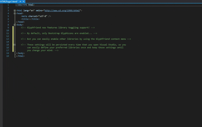 - You can now easily select the libraries, which you wish to use with Glyphfriend by simply right-clicking within the HTML file and choosing them. Bootstrap Glyphicons are enabled by default, but any other libraries can easily be added with a single click. These preferences will persist even after closing Visual Studio and starting a new session.