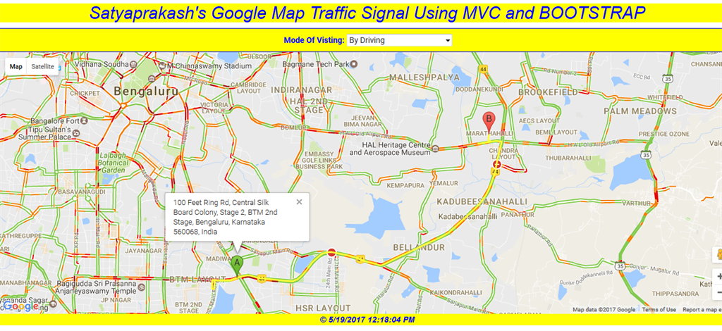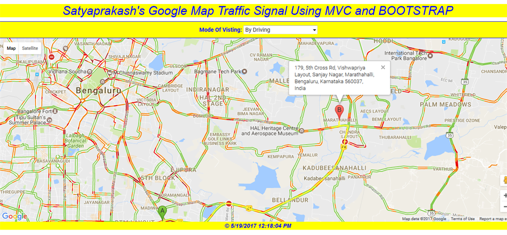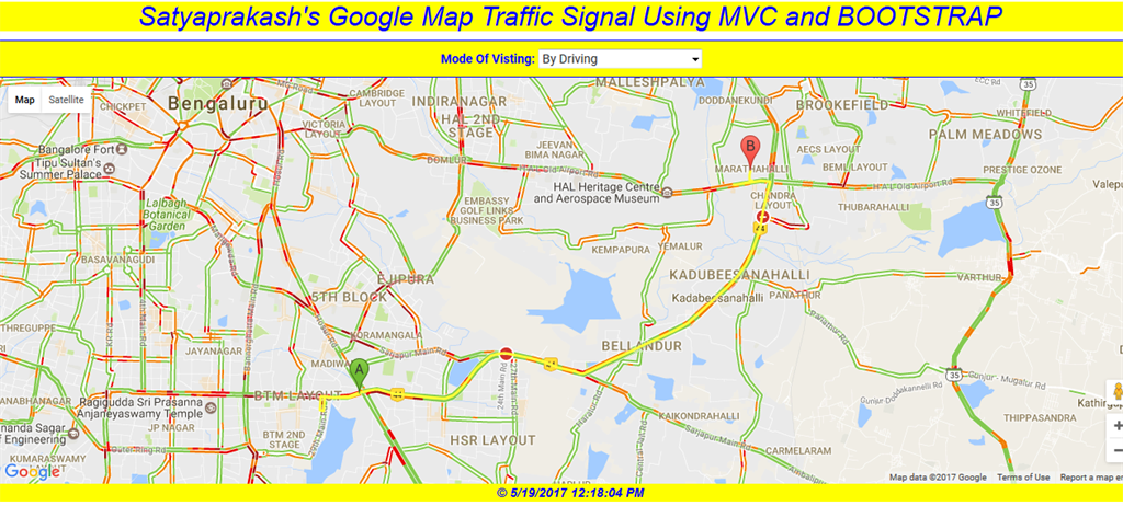 - <h2 style="background-color: yellow; color: Blue; text-align: center; font-style: oblique; ">Satyaprakash's Google Map Travelling Mode Using MVC and BOOTSTRAP</h2>