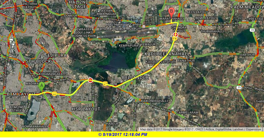For Bicycling mode,The Central Silk board and Marathahalli route not found in Google Server.