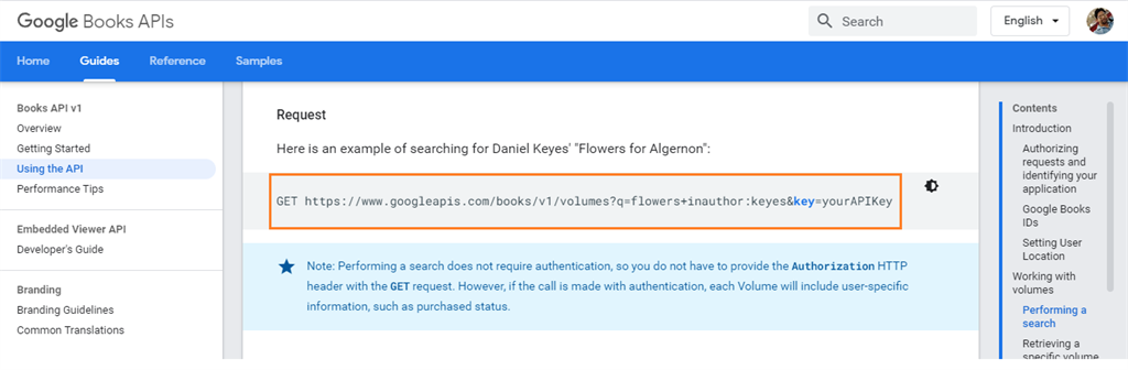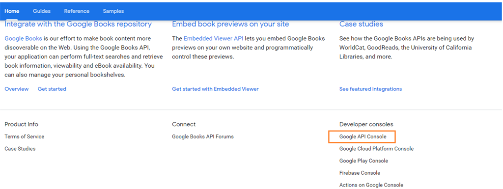 To get the url for Google books API go to