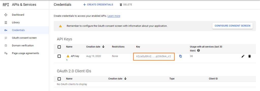 On the home menu click on Google Api console you can redirect it to Google api console page where you can find the api key.