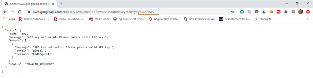 You can check the response of it in our browser without API key it will give an error.