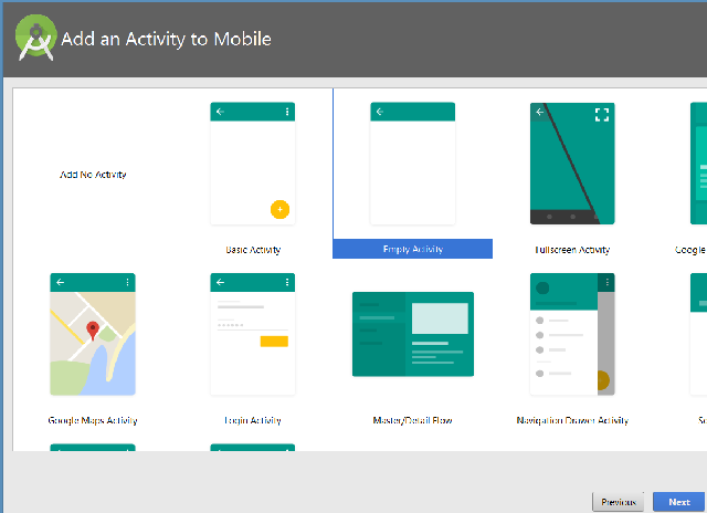 Let us take an Android application and select activity using Android Studio version 2.1.