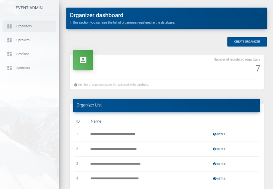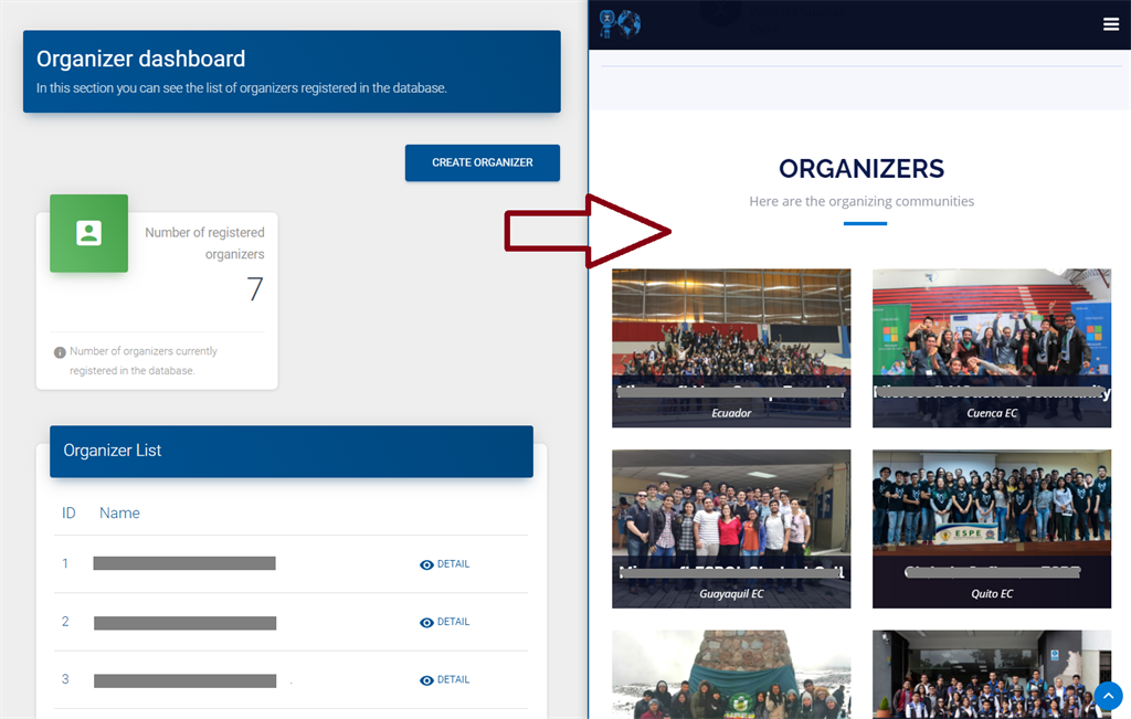 For these purposes, we will have two platforms with the same database. The first to manage the event data, and the second to present this data to the users or attendees of our event.