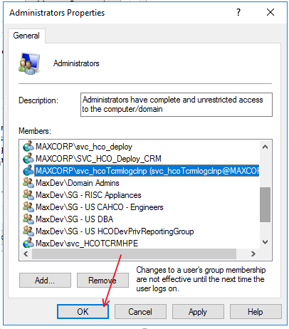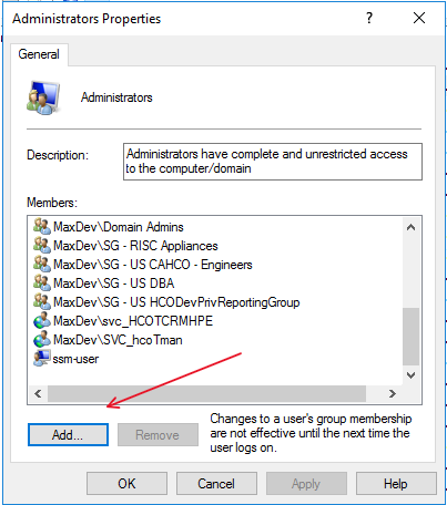 If not, Click Add button to open the Select Users Computers, Service Accounts, or Groups window: