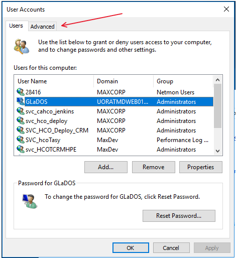 Type user accounts in Windows Search bar --- the computer must be a server.