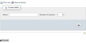 In this above image click Create table tab to create your new table for your database. Mention fields and their type and strength set the primary key for your table and then hit the Go button to create a table.