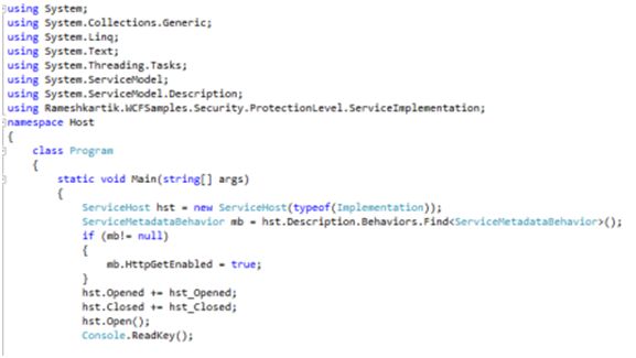 The simplest way to host your services is self-hosting that can suffice using the Winforms, Console applications and windows services. The Developer must simply instantiate the Service Host class that is derived from system.servicemodel. Service Host will be opened when it will be instantiated with the parameters service type,contract type and endpoints.Once it is opened it will allocate the work process to receive the incoming messages from the client and serve it. Ok, let's move on to discuss the steps required for the Self Hosting.