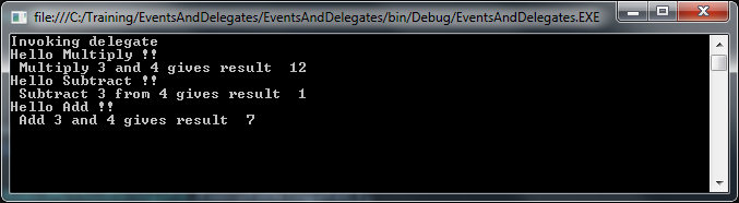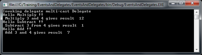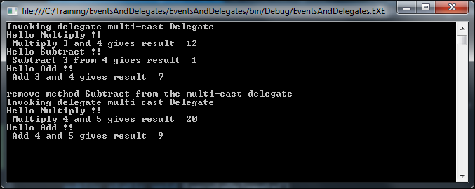 Some time we would like to call some methods in a sequential manner which can be done by using multicast delegate. This is already explained in the multicast example shown above.