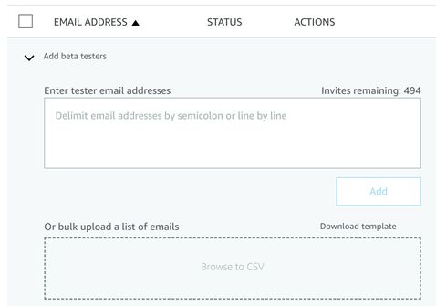 You can add all beta testers emails in the email addresses box. You can add them one by one or add more than one by using a semicolon or line by line. If you have a text or CSV file, you can also bulk upload it.