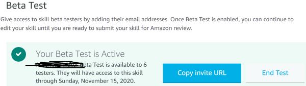 You’re all set. All beta testers (emails) added to the above list will get an email with the URL to add your skill to their Alexa app. Once added successfully, the skill will be available on their Alexa-enabled devices.