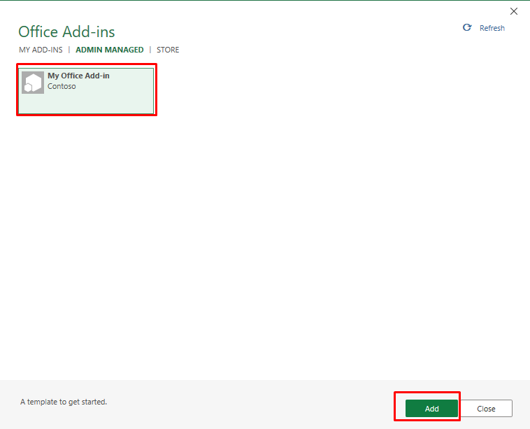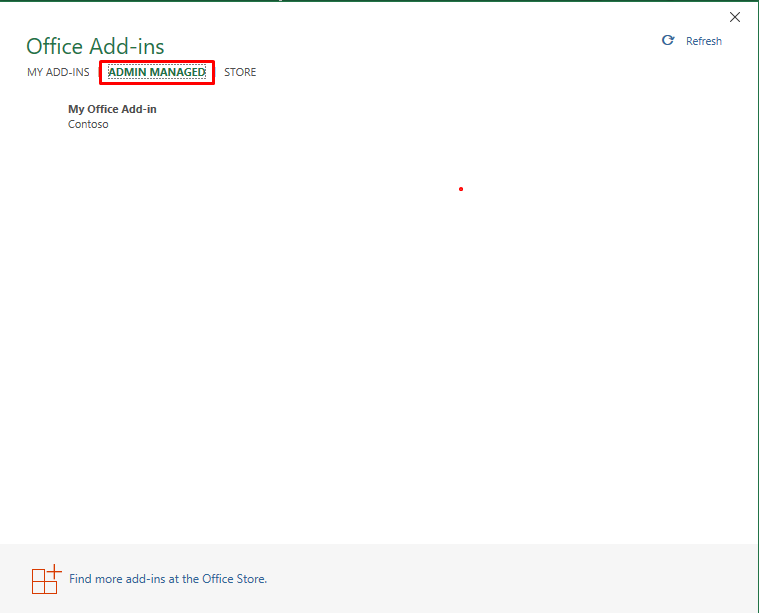 If you already deployed your add-ins and it’s not showing in the opened window, then click on the Refresh button.
