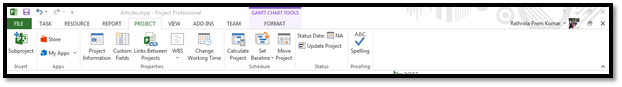 Click on Project Ribbon, as shown below.