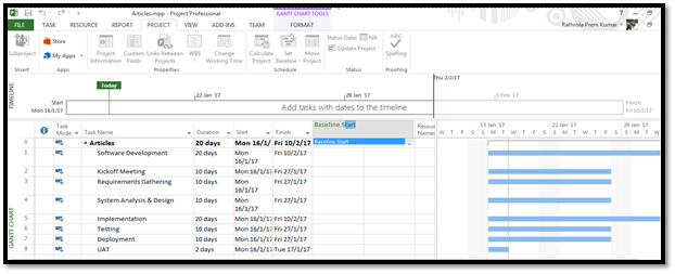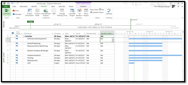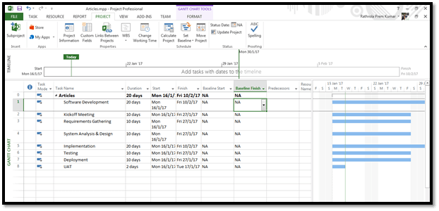 Simple: Microsoft Project will let us clear Baseline. Now, let’s see it practically, Open Microsoft Project on the desktop and create a sample work program (Refer to first article).