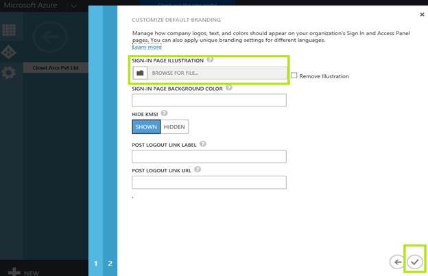 Under the “Sign-In Page Illustration”, browse and give the background you desire to be available to the users when they land on the Office 365 Sign in page. Once done, click on the check mark to apply changes.