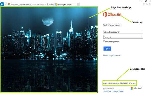 Once the changes are applied, your Office 365 Sign-in page should look like below with the custom brandings that you just applied via Azure AD.