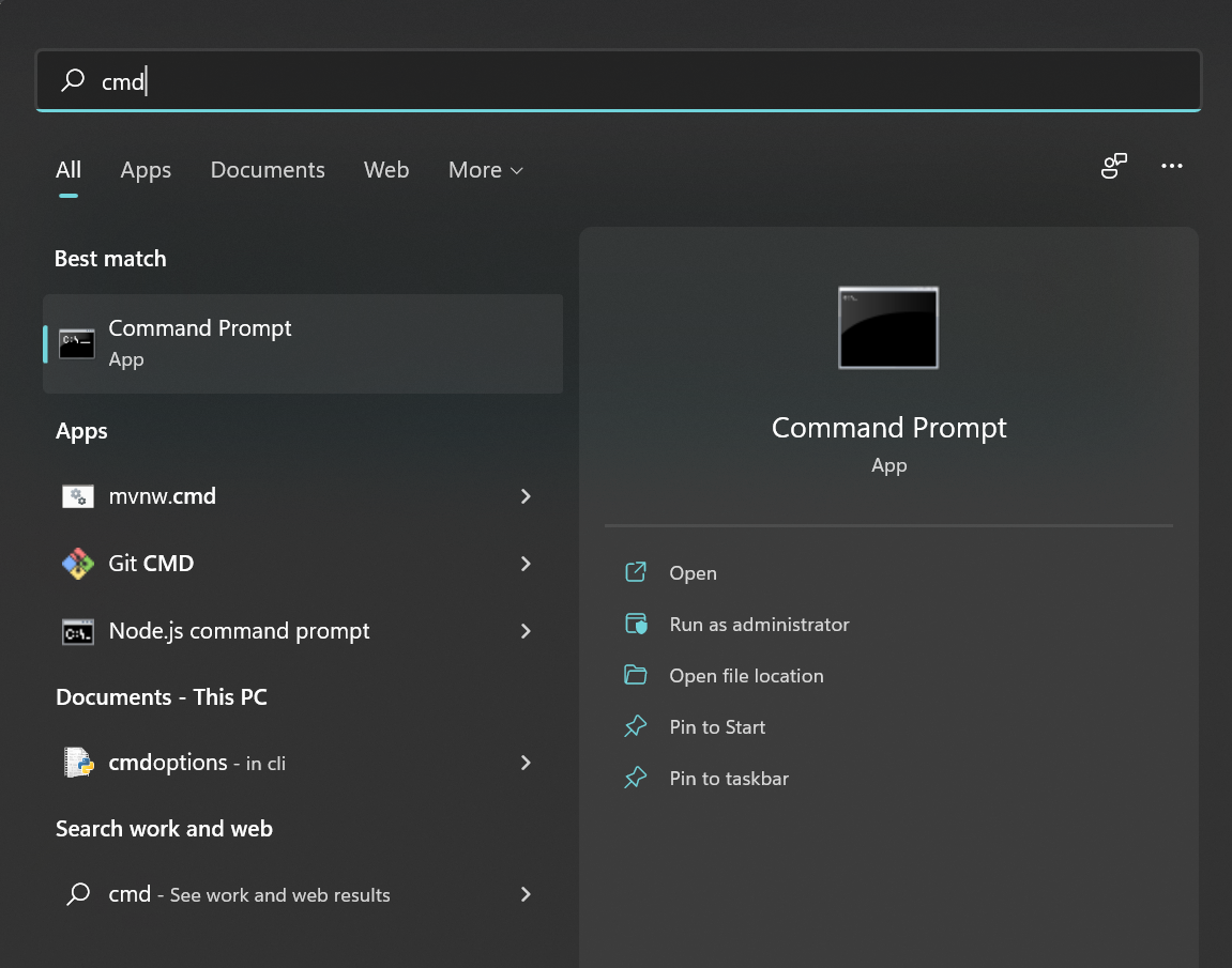 Press Windows+S and type "cmd". Select "Run as administrator".