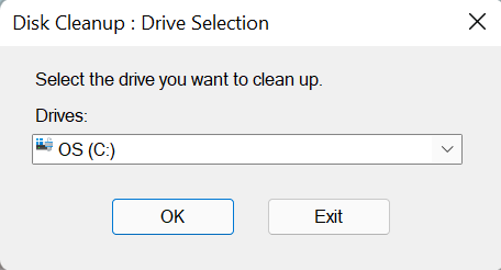 Click on Windows+S to open the search menu, and type Disk Cleanup. Select "Open" or "Run as administrator". I prefer to use "Run as administrator".