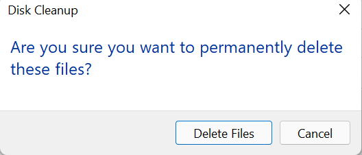 You will be prompted for a confirmation. Click "Delete Files" to start with the delete process.