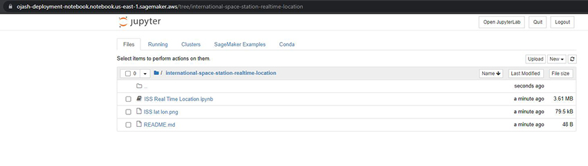 You can now close the tab and check out the Jupyter Notebook Home Page. The New directory, international-space-station-realtime-location can now be viewed and explored.