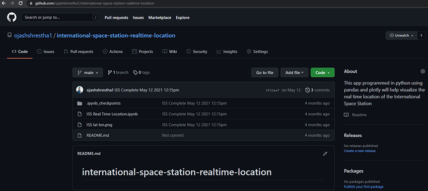 In the case here, I’m cloning the repo from my GitHub which is an app programmed in python using pandas and plotly will help visualize the real-time location of the International Space Station.