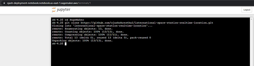 Note, that complex Machine Learning applications with numerous libraries to be installed, that uses huge libraries provided in SageMaker service itself can be clone in Amazon SageMaker with this procedure with ease. Thereafter, you could train the models and test them on the platform itself without much worry about the library installation complexities.