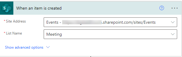 Add a Trigger – “When an item is created”. Provide Site address and URL.