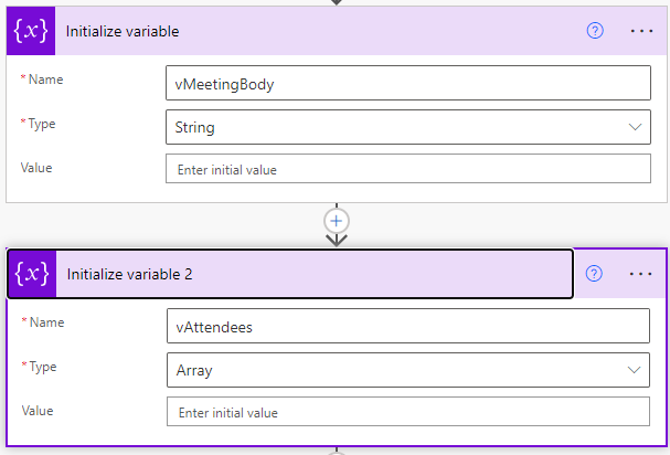 Create Attendees array using the following JSON structure. Here, we need to provide “AttendeesDisplayName” and “Attendees Email”. This will automatically add Apply to each loop.