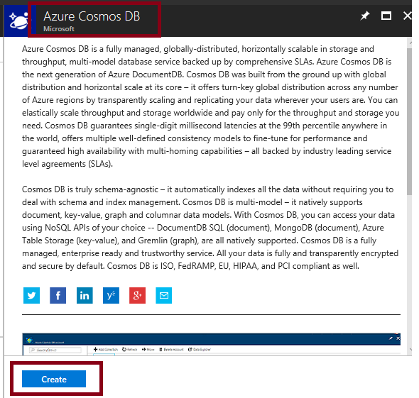 After logging in your Azure portal, click create a resource and search the Azure Cosmo DB,