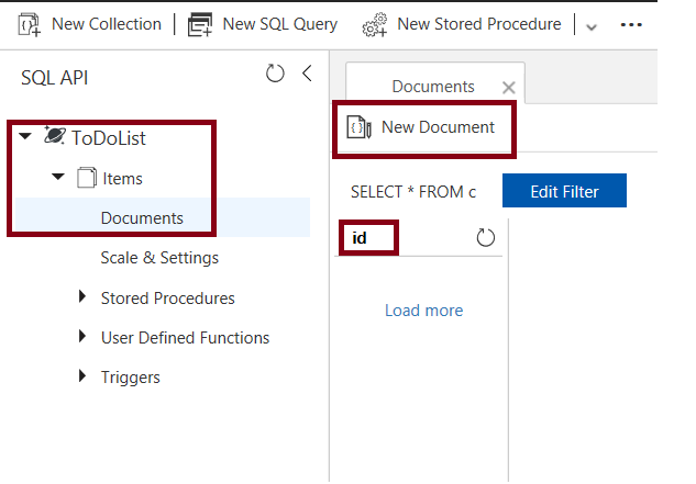 While clicking the Document Explorer, we can view the empty ToDoList with Item documents,