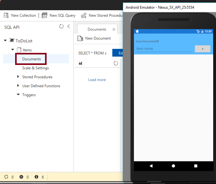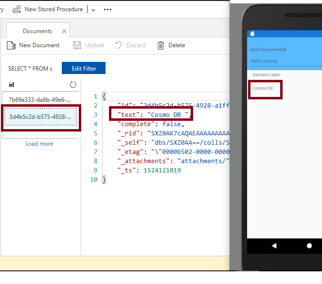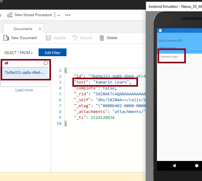 Build and Run the project in Android emulator, the collection Document update in Azure Portal,