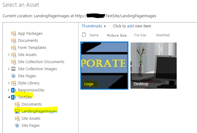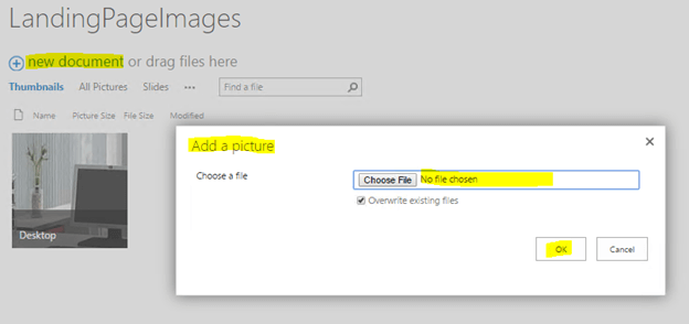 Adding images to "LandingPageImages" picture library.