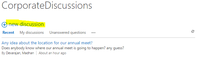 To add a new discussion, please click on the new discussion link, as shown below.