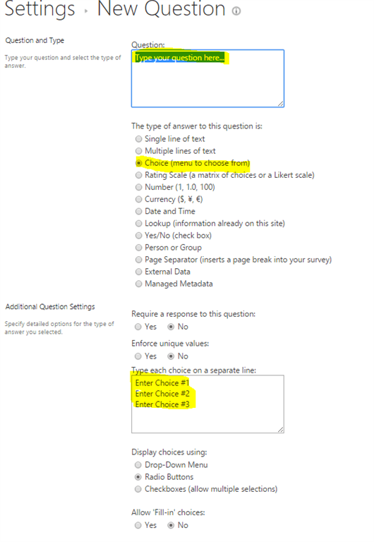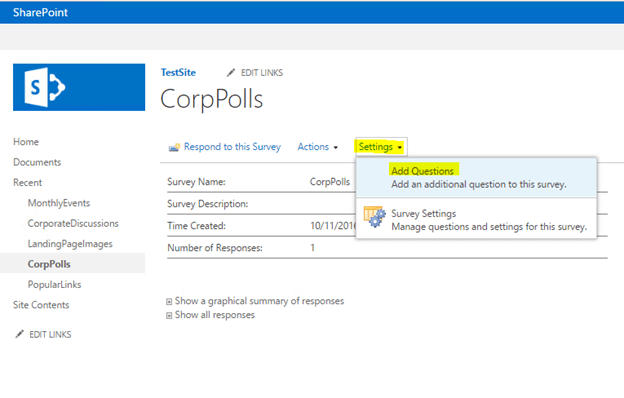 To add Poll questions and options, go to "Settings" and "Add Questions".