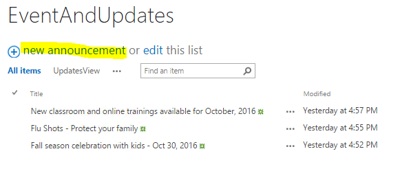 In order to add announcements and events, please follow the below steps.