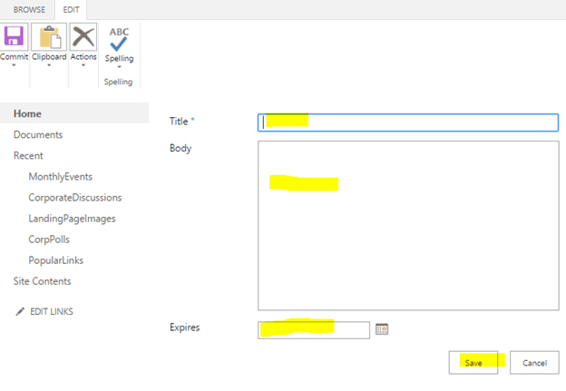 After clicking the link "new announcement", you will see the below form for submitting the announcements. Fill in the details and click "Save".
