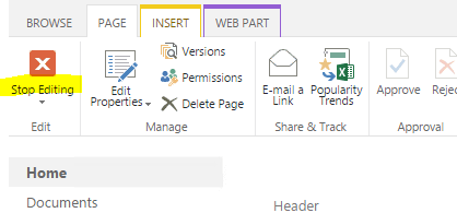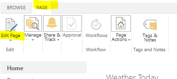 To edit the newly created page, use "Edit Page" option at the top ribbon, as shown below.
