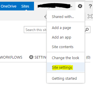 Now, to change the Logo in the page, go to "Site settings" from the Top ribbon (right top corner).