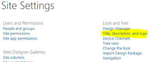 In "Site settings" page, you will see the "Title, Description, and Logo" link.