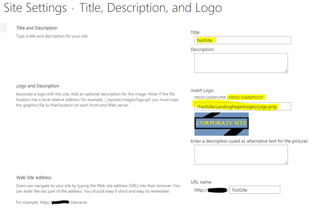 Here is the screen to change the "Title, Description and Logo" and click ".