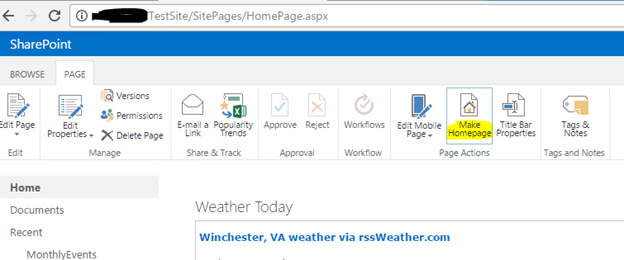 Finally, to make the newly created page as "Home Page", use the below option available in Top Ribbon.