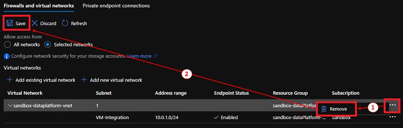 In our previous tutorial, we have set up a Virtual network integration with our data lake. The first thing we need to do is to remove this integration:
